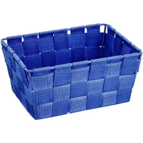 4-er Set Wenko 20358100 Aufbewahrungskorb Adria Mini – Long, Kunststoff-Geflecht, 14 x 19 x 9 cm, Blau
