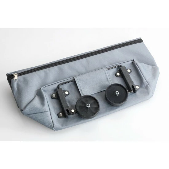 Der Einkaufswagen ruht auf einem Stahlrahmen auf zwei Rädern. Aufgrund des verwendeten Materials ist das Rack stabil und langlebig, aber gleichzeitigleicht. Die Tasche besteht aus hochwertigem Polyestermaterial (600D), reißfest und leicht von Schmutz zu reinigen. Die Gesamtkapazität des Beutels beträgt 20 Liter. Nutzlast von 10 kg Auf Wunsch können 2 Vollräder ausgebreitet werden, um schwerere Gegenstände bequem zu transportieren.