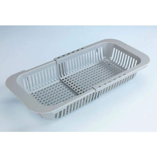 Teleskopkorb zum Trocknen von Geschirr kann erfolgreich in die Spülenkammer eingebautwerden. Die Auflagefläche ist so konzipiert, dass der Korb optimal ruht und sich gut zum Entleeren der Spüle, zum Sammeln von Pflanzenabfällen oder zum Lagern kleiner Gefäße eignet. Darüber hinaus eignet es sich auch ideal zum Aufbewahren von Spül-, Reinigungs- und Waschutensilien in der Küche und im Hausschrank. Es wird auch als Gemüse- oder Obsttrockner überprüft. Alternativ kann es auch als Korb zur Aufbewahrung von Gewürzen oder chemischen Mitteln verwendet werden.