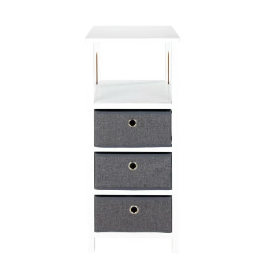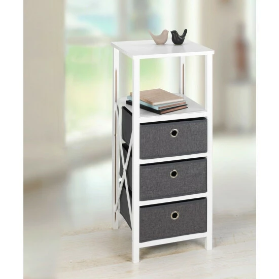Der Schrank verfügt über drei Schubladen, in denen Sie problemlos alle notwendigen Dinge des täglichen Bedarfs unterbringen können. Sie können Ihre Lieblingskosmetik, Make-up-Accessoires oder Haarpflegeprodukte hineinlegen. Es bietet auch perfekt Platz für alle Küchenhelfer oder Gewürze, sodass Sie den Raum auch in einer schwer zu arrangierten Küche problemlos organisieren können. Im Schlafzimmer funktioniert der Schrank perfekt als Nachttisch, auf der Theke können Sie ein Nachttischlampen aufstellen und in Schubladen Ihre Lieblingsbücher legen.
