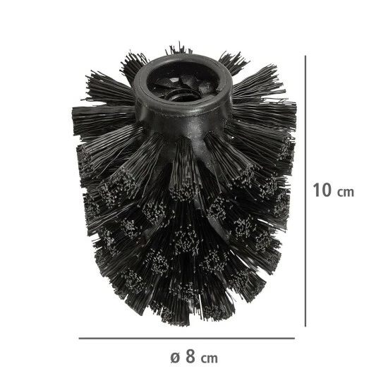 Der auswechselbare Bürstenkopf entspricht mit einem Kopf-Durchmesser von 8 cm und einem Gewinde von 10 mm einem Standard-Bürstenkopf und eignet sich somit für alle gängigen WC-Garnituren und Bürstenstiele. Zum Austauschen wird der Bürstenkopf kinderleicht auf den vorhandenen Stiel gedreht. Somit kann der Bürstenstiel sehr lange verwendet werden – dies ist nachhaltig und freut die Umwelt!