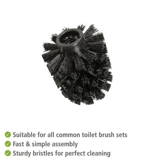 der schwarze Bürstenkopf reinigt jeden Winkel der Toilette ohne viel Druckaufwand und ohne zu Verkratzen - umweltfreundlich: