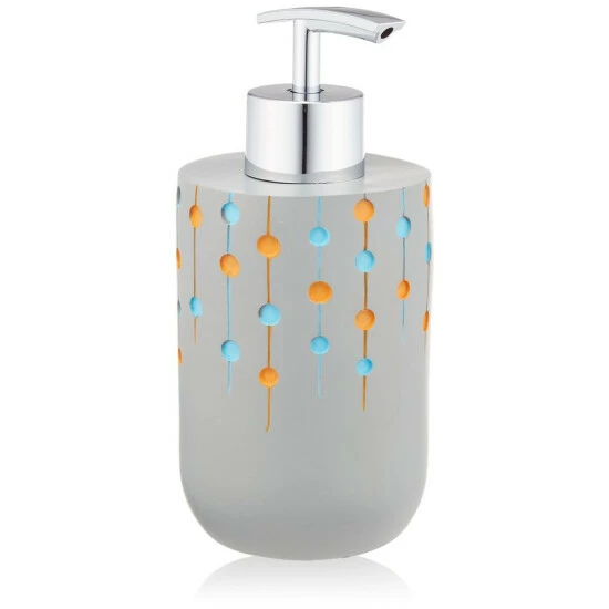 Nachfüllbarer Seifenspender für die portionierte Abgabe von Flüssigseife oder Lotion Aus hochwertigem Polyresin Farbe: Grau/Orange/Blau Maße (B/T x H): Ø 7,2 x 15,5 cm