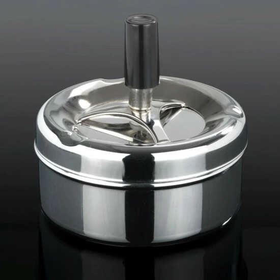 Einfach auf den Knopf drücken und schon springt der Drehmechanismus an und entsorgt Zigarettenstummel und Asche im Aschenbecher.