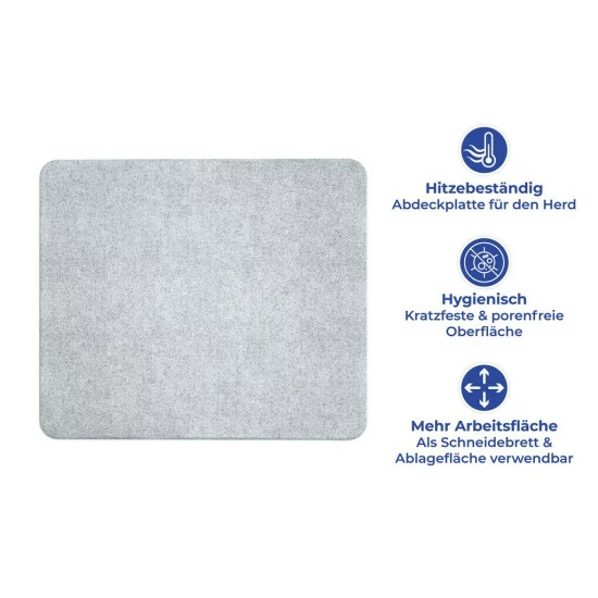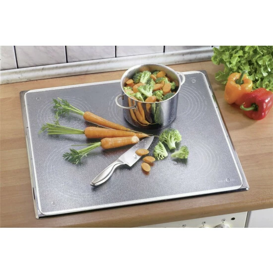 Eine zusätzliche, mobile Arbeitsfläche, ein Riesen-Schneidebrett (50 x 56 cm) und Schutz für den Herd – eine 3 in 1 Kombination bietet diese extra große Glas-Abdeckplatte.