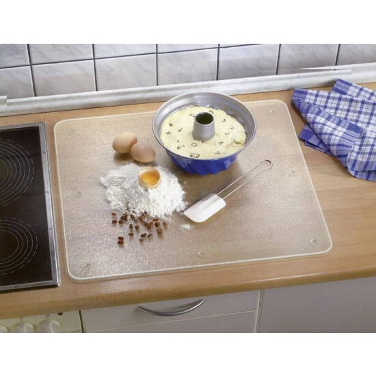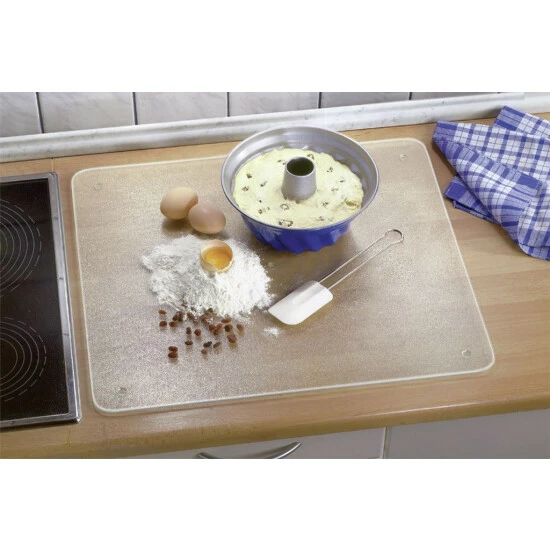 Herdplatte aus satiniertem Glas, 3 in 1 Schneidebrett, WENKO ist sehr langlebig und widerstandsfähig gegen Dämpfung und Kratzer. Es besteht aus hitzebeständigem Hartglas und vereint drei Funktionen – die Funktion der den Ofen bedeckenden Platte, die Funktion des Schneidebretts und die Funktion der Arbeitsfläche zum Kneten und Rollen des Teigs.