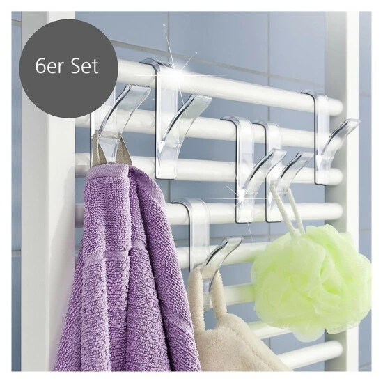 Badheizkörper-Haken im praktischen 6er Set - unauffälliges Design: