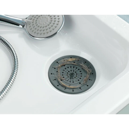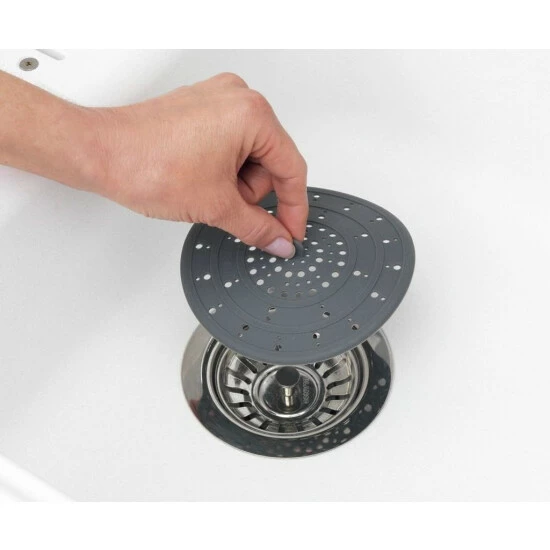 Ab sofort ist keine lästiges und ekliges Fummeln beim Reinigen von Abflüssen im Badezimmer oder in der Küche mehr notwendig. Das Abfluss-Sieb im trendigen Grau lässt sich ganz einfach über den Abfluss legen und fängt jegliche Reste auf.