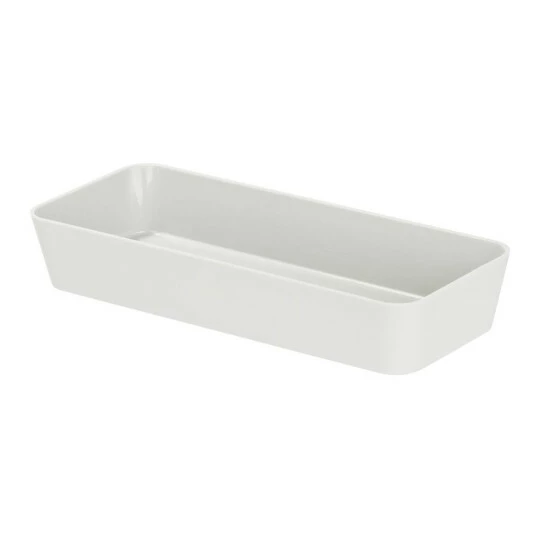 Hochwertiger, schwerer KunststoffMit Soft-Touch BeschichtungIn aktueller Trendfarbe WeißLängliches FormatMaße (B x H x T): 24 x 4 x 10 cm
