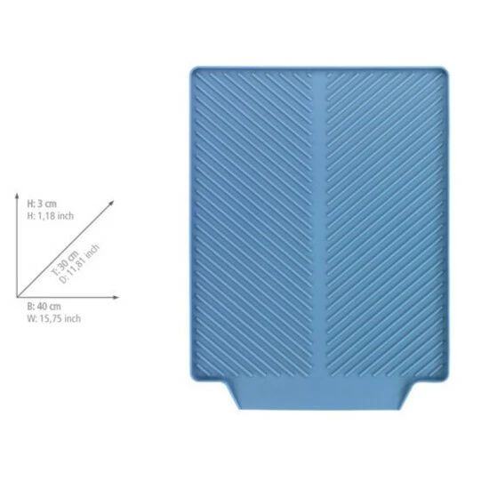 Die Matte ist ästhetisch, leicht zu reinigen und hygienisch. Es hat eine Universalgröße von 30 cm x 3 cm x 40 cm (Länge x Höhe x Breite)sowie eine neutrale blaue Farbe. Produkt der deutschen Marke Wenko