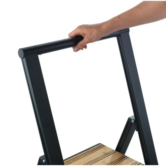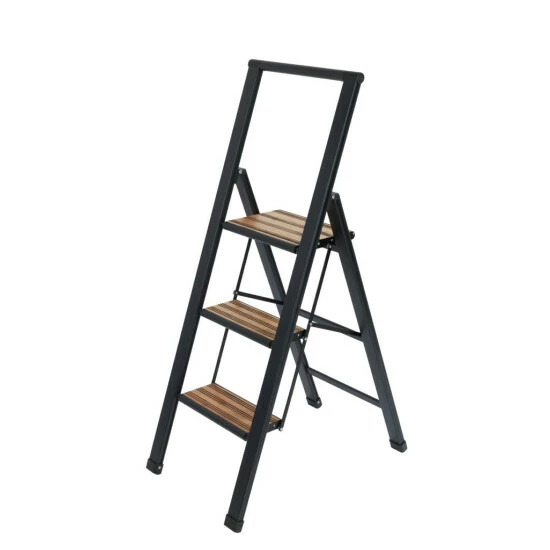 Die moderne, zuverlässige Leiter ist aus hochwertigem, robustem Aluminium und rutschsicheren Kunststoffkappen hergestellt. Das schwarz-lackierte Aluminium ist trendig mattiert und die Stufen sind aus hochwertigem Bambus gefertigt, welcher hart und widerstandsfähig ist.