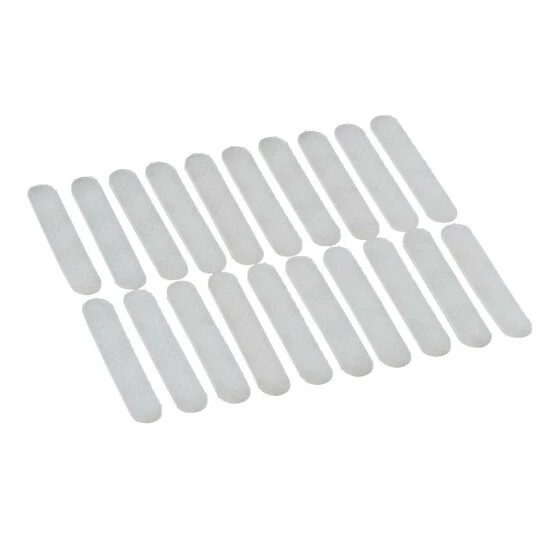 Diese praktischen Helfer werden im 20er Pack geliefert. Das großzügige Set ist ausreichend für 10 Bügel. Einfach die Schutzfolie entfernen und auf die Bügelenden kleben.