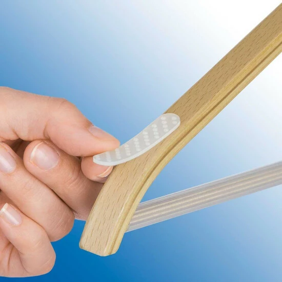 Machen Sie Schluss mit Textilien, die vom Kleiderbügel rutschen. Die Noppen der Anti-Rutsch-Streifen halten Seidenblusen, Trägerkleider, Tops, Aufhänger von Hosen oder Röcken, etc. ordentlich auf dem Kleiderbügel fest. Die selbstklebenden Silikonstreifen werden einfach an jedem Bügelende angebracht, fertig.