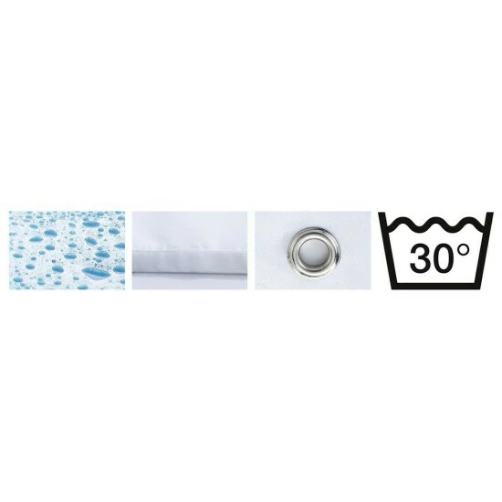 - Praktische Vorteile: Ausgestattet mit einem umweltfreundlichem Gewichtsband aus Gummi (statt Bleikette) und verstärkten, rostfreien Metallösen zeichnet sich der wasserabweisende Vorhang durch besondere Haltbarkeit aus