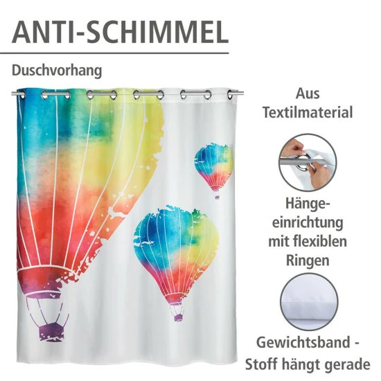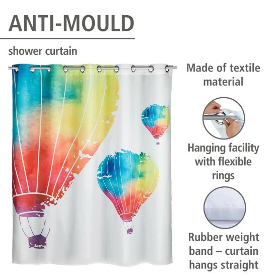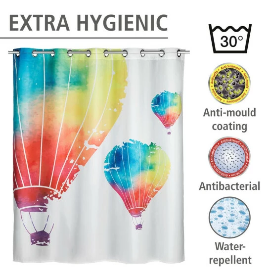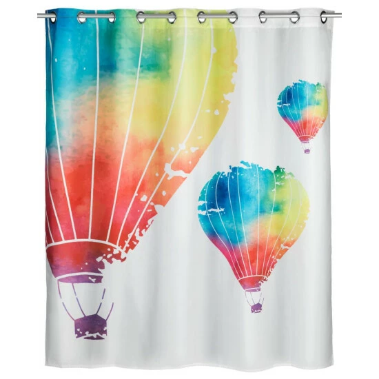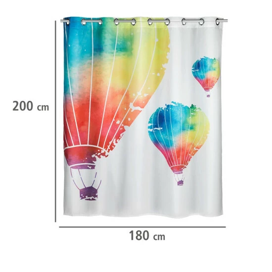 Steigen Sie mit den Ballons auf! Der aufwendige Druck mit dem ausgefallenen Heißluftballon-Design verleiht dem Badezimmer mehr Stil und eignet sich mit einer Breite von 180 cm sowohl für Dusche als auch Badewanne.