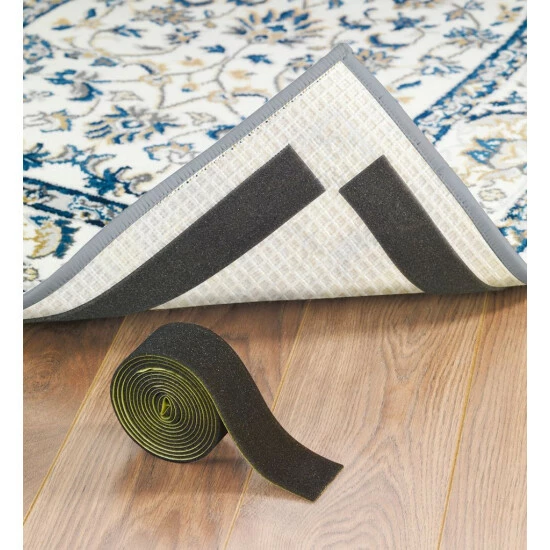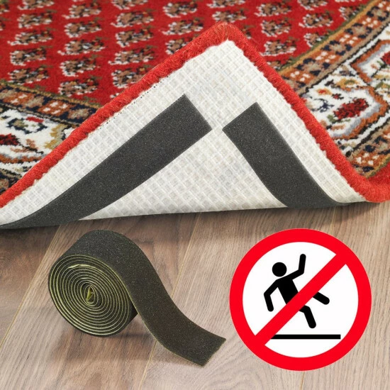 Teppiche auf Fliesen, Laminat oder anderen glatten Böden sind eine große Gefahrenquelle. Schnell wird das Laufen darauf zur unerwünschten Schlitterpartie. Gehen Sie kein Risiko ein und statten Sie Ihre Teppiche mit dem Antirutsch-Band aus. Band individuell zuschneidbar.