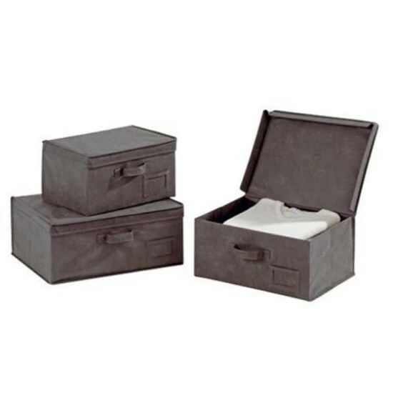 Praktische Box zur Aufbewahrung von Kleidung, Accessoires, Zeitschriften oder Fotos Bei Nichtgebrauch platzsparend zusammenfaltbar Mit Beschriftungsfenster und Henkel Aus atmungsaktivem, hochwertigem Vlies-Material Maße (B x H x T): 35 x 20 x 25 cm