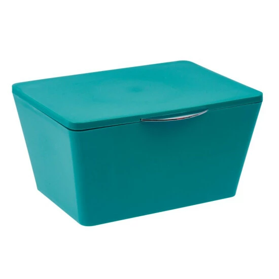 - Edler Hingucker: Der praktische Korb ist aus Kunststoff in Petrol mit mattierter Oberfläche gefertigt und eignet sich optimal zur Aufbewahrung von Accessoires in Bad und Haushalt, der Deckel bietet Schutz vor Nässe, Staub und Blicken