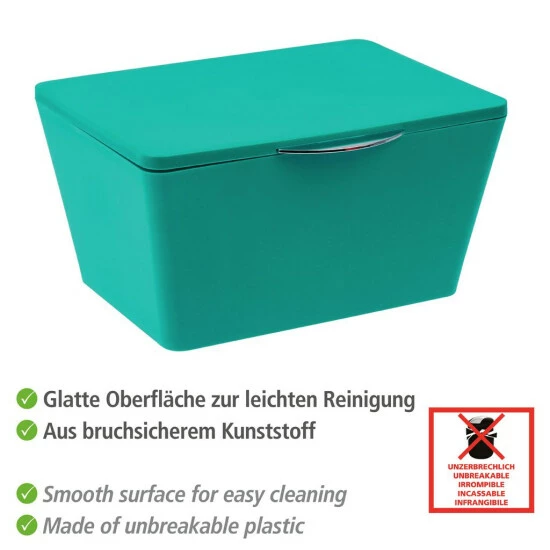WENKO Aufbewahrungsbox mit Deckel Brasil, mattierter Aufbewahrungskorb für Badezimmer & Gäste-WC, dekorativer Badkorb aus bruchsicherem Kunststoff, BPA-frei, 19 x 10 x 15,5 cm, Petrol