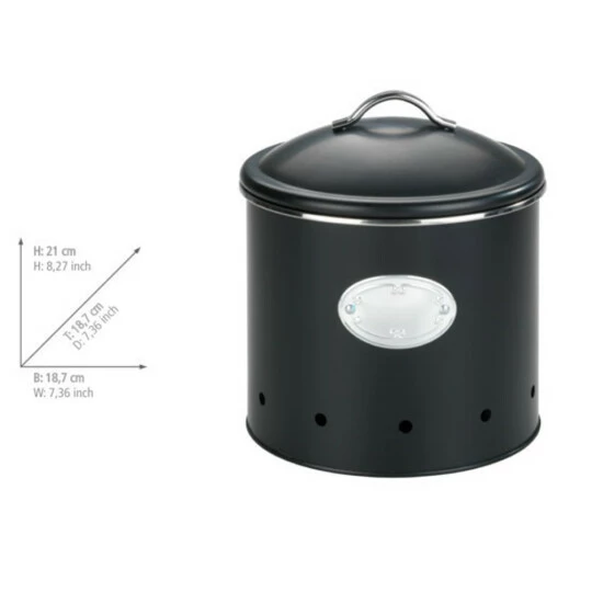 Einfache Form und schwarze, matte Farbe verleihen dem Produkt ein einzigartiges Aussehen. Der Behälter wird sich wunderbar auf der Küchentheke oder dem Tisch präsentieren – Sie müssen sie nicht in den Schränken abdecken! Der Behälter hat Maße: Durchmesser 18,7 cm, Höhe 21 cm und Fassungsvermögen 4 l.