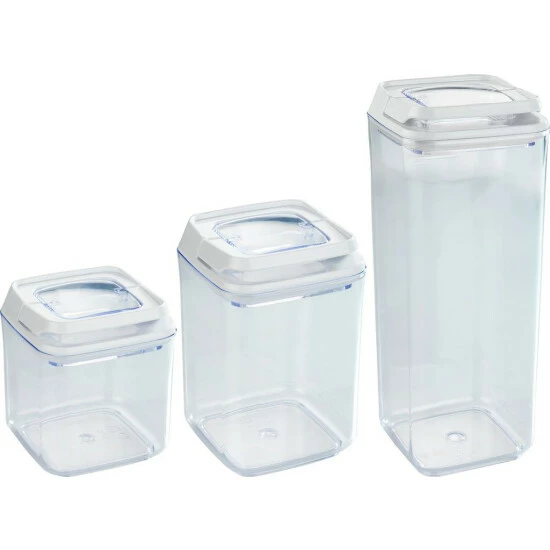 Die drei hochwertigen Vorratsdosen von WENKO bringen Stil und Ordnung in jede Küche. Sobald Tüten und Verpackungen mit Lebensmittel angebrochen und nicht sofort auf werden, eignen sich diese Frischhaltedosen als unverzichtbare Küchenhelfer.