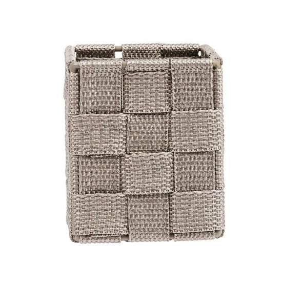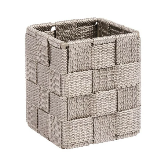 Mit dem Badkorb Adria Cubo in Taupe verbreiten Sie eine trendige Atmosphäre und schaffen Ordnung im gesamten Haushalt. Die stilvolle Box aus hochwertigem Kunststoff-Geflecht bietet genügend Platz für Kämme, Kosmetik und andere kleine Badezimmer-Accessoires.