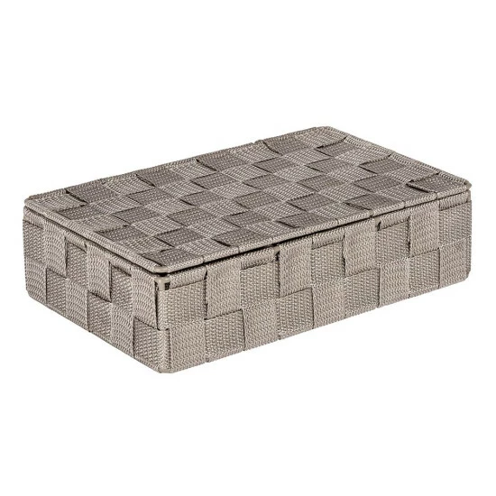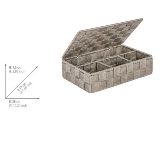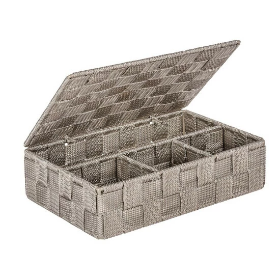 WENKO 22569100 Aufbewahrungskorb mit Deckel Adria Taupe Klein – Badkorb mit Deckel und 4 Fächern, Polypropylen, 26 x 7,5 x 17 cm, taupe