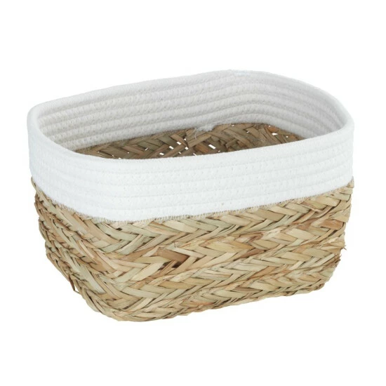 Ob Gästehandtücher im Badschrank oder Kochhandschuhe in der Küchenschublade – Ihre Accessoires sind hübsch verwahrt und schnell greifbar. Neben Textilien bewahrt das aus geflochtenem, natürlichen Borstengras gefertigt Körbchen auch Kosmetikartikel und Bürobedarf hübsch auf. Abgesetzt mit weißem Stoff aus 100 % Baumwolle macht das Organisationstalent auch in einem offenen Regal eine hervorragende Figur.