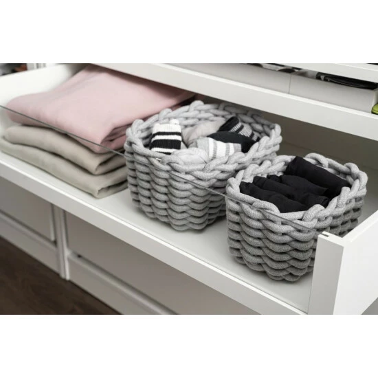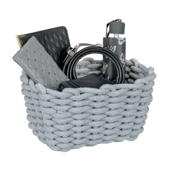 Im Kleiderschrank bewahren Sie in dem dekorativen Korb besonders übersichtlich Tücher, Accessoires oder kleine Taschen und Portemonnaies übersichtlich aus. Der ideale Begleiter ist der weiche Aufbewahrungskorb auch in der Wäscheschublade für Socken & Co. Neben dem Einsatz im Schlafzimmer ist das Körbchen von WENKO Ihnen auch gerne eine Hilfe, wenn es um die ansprechende Aufbewahrung von Badaccessoires im Badezimmerschrank oder im Badregal geht. Haarbürste und Kamm stehen einsatzbereit zur Verfügung.