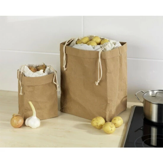 Die praktischen Aufbewahrungstüten von WENKO verlängern die Haltbarkeit und Frische des Gemüses. In den Frischhaltebeutel werden Kartoffeln, Zwiebeln oder Knoblauch lichtgeschützt und atmungsaktiv gelagert und so die Keimung verzögert.