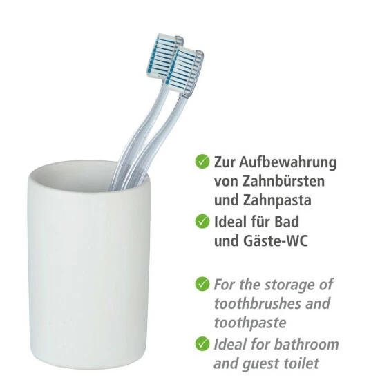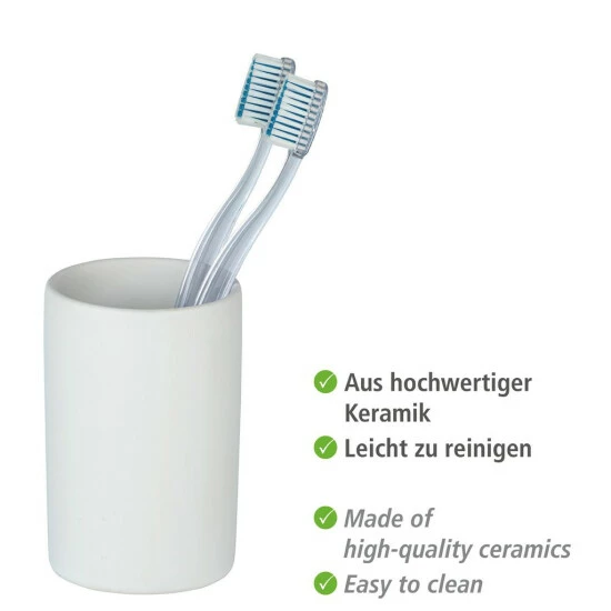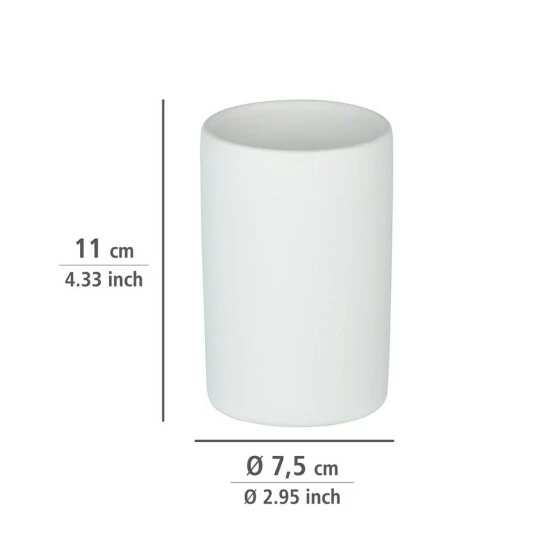 Der Zahnputzbecher Polaris in Weiß matt bietet einen dekorativen Stellplatz für Zahnbürsten und -pasta und hält diese stets an gewünschter Stelle griffbereit.