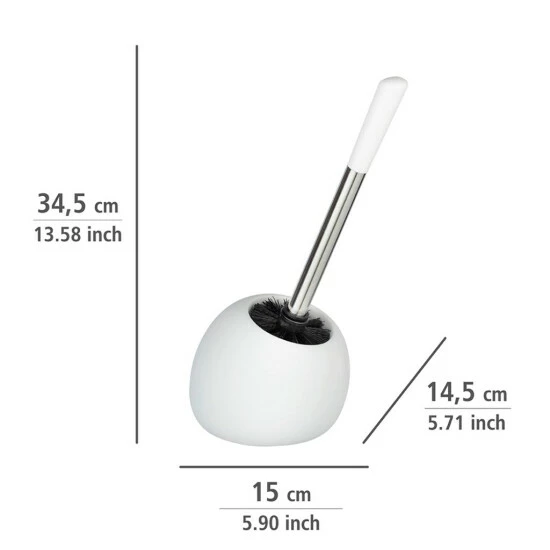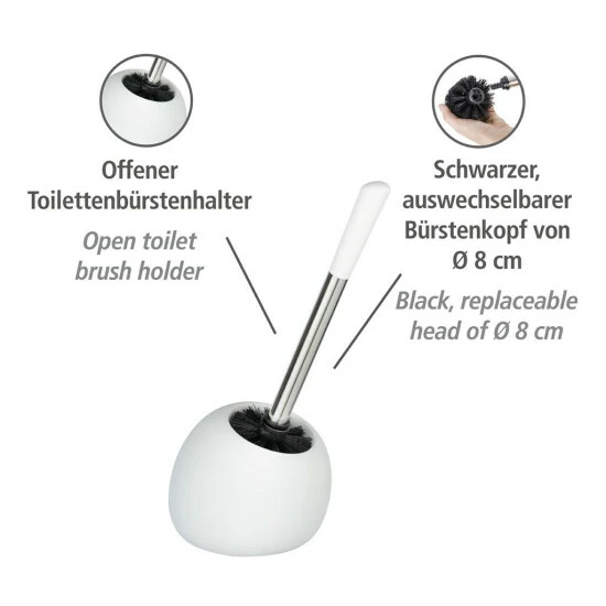 Mit der praktischen WC-Garnitur Polaris in Weiß wird das WC gründlich gereinigt. Der Bürstenhalter hält die Bürste stets am gewünschten Platz dekorativ griffbereit. Im Lieferumfang ist eine WC-Bürste mit schwarzem, auswechselbarem Bürstenkopf von Ø 7,5 cm enthalten.