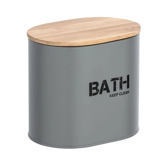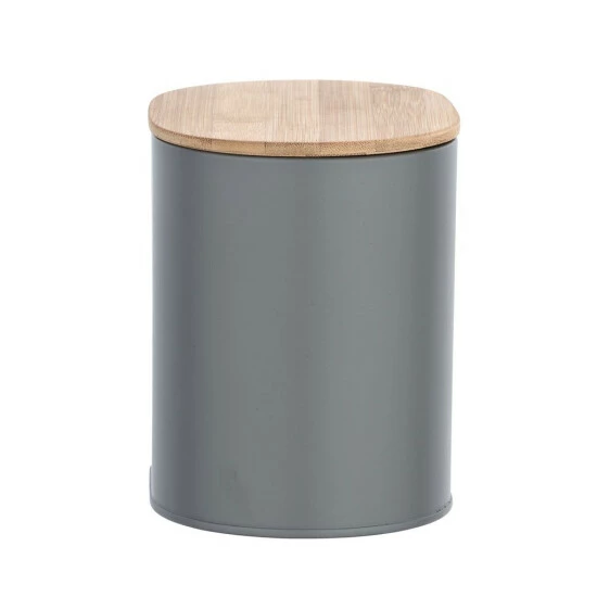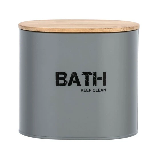 Das Produkt sieht ordentlich und stilvoll aus, sodass Sie es nicht in Möbeln verstecken müssen. Es kann genauso gut an der Spitze sein – an sich stellt es eine Dekoration dar. Dies ist eine großartige Lösung für das Badezimmer – in Behältern legen Sie Kosmetika, Reinigungsmittel, Handtücher, Hygieneprodukte, Fön oder Rasierer ein. Darüber hinaus wird der Behälter in der Waschküche überprüft, um Wäschekapseln oder andere Chemikalien zu lagern, die einen verschlossenen Behälter benötigen. Die Möglichkeiten sind eine ganze Menge! Der Deckel macht das Produkt sehr praktisch. Das Material, aus dem das Produkt hergestellt wurde, ist die Kombination einer Metalldose mit einem Holzdeckel. Dies ist ein extrem haltbares und langlebiges Material, und dafür ist das Waschen und Reinigen einfach..