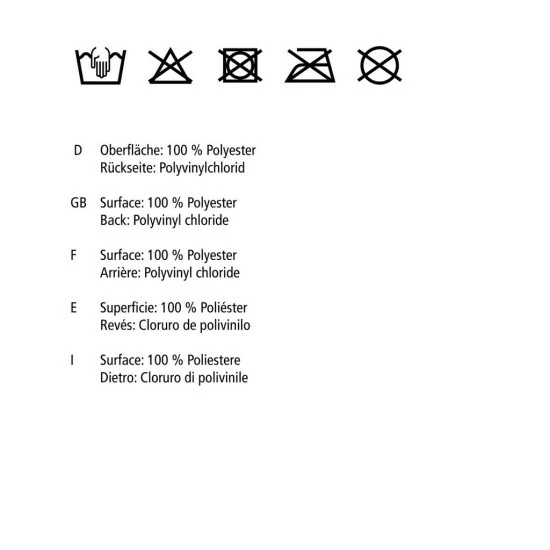 - Oberfläche: 100 % Polyester, Rückseite: Polyvinylchlorid