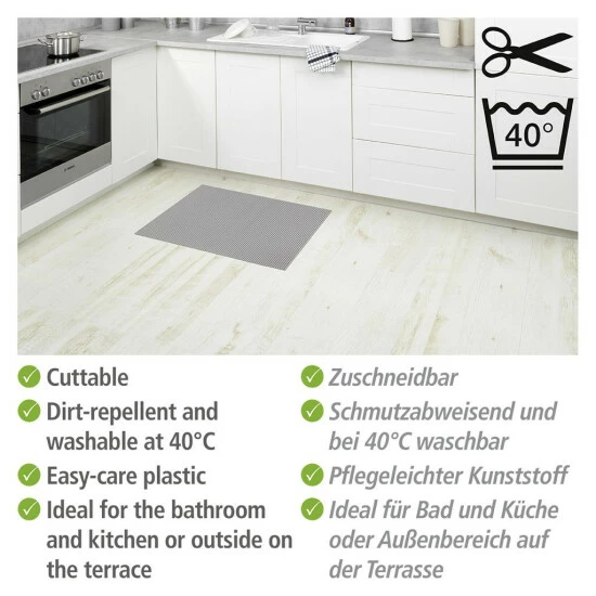 Ideal eignet sich die Matte als Bad- und Duschvorleger im Badezimmer. Sie ist rutschfest und sorgt so für die nötige Sicherheit, überall da wo es nass werden kann. Auch in der Küche macht sie als Küchenläufer eine gute Figur.