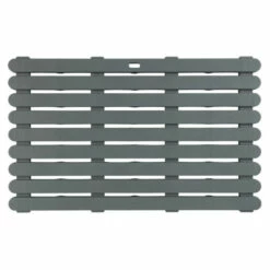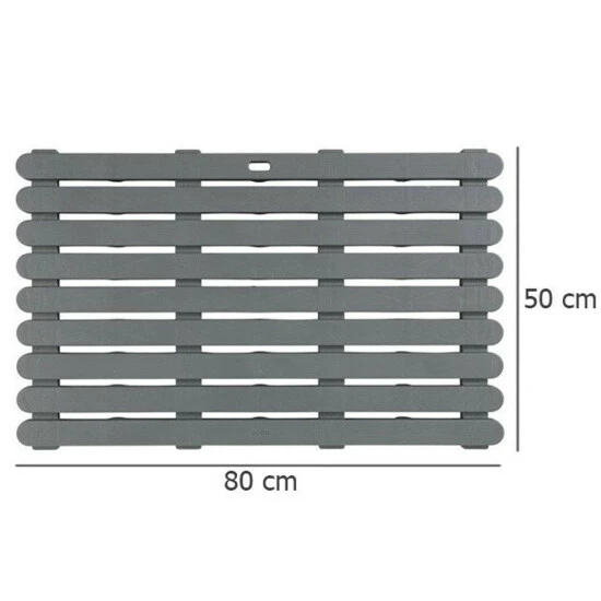 Bietet Schutz gegen Verrutschen im Badezimmer oder im Pool zu Hause. Anti-Rutsch-Pad ist nicht nur eine originelle Ergänzung für den Innenraum, sondern auch mehr Sicherheit. Das Pad ist aus leichtem und strapazierfähigem Kunststoff in Grau gefertigt. Die Abmessungen des Polsters sind 50×80 cm, in seiner Form ähnelt einem Boden aus lose verlegten Brettern. Dank seiner ursprünglichen Erscheinung wird es eine interessante Ergänzung zum Badezimmer sein. Es wird toll sein, mit echtem Holz zu mischen. Es passt zu Badezimmern, die in einem einfachen, leicht strengen Stil fertig sind. Es schützt Sie nicht nur vor dem Fallen in der Dusche oder in der Badewanne, sondern sieht auch gut aus. Es bietet auch mehr Komfort für nackte Füße als kalte Fliesen.