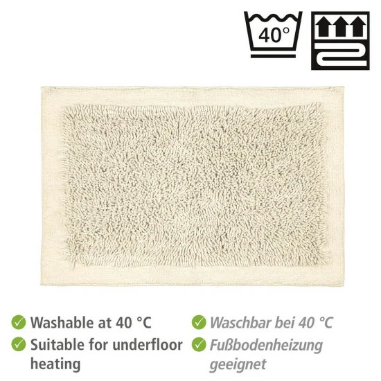Der Baumwoll-Teppich Sidyma kann bei bis zu 40 °C in der Waschmaschine gewaschen werden und ist für Fußbodenheizung geeignet. So haben Sie ganz lange Freude an dem Badtextil. Sie lieben Baumwolle, bevorzugen aber eine andere Farbwelt? Bei WENKO finden Sie eine Auswahl an verschiedenen Badematten aus nachhaltigen Materialien.