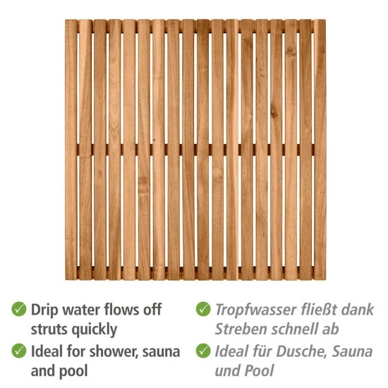 Der Baderost Indoor & Outdoor Acacia von WENKO empfängt Sie als naturnaher Hingucker nach der der erfrischenden Dusche oder dem entspannenden Saunagang. Geeignet für Innen und Außen besticht der Duschrost vor allem durch seine Natürlichkeit.