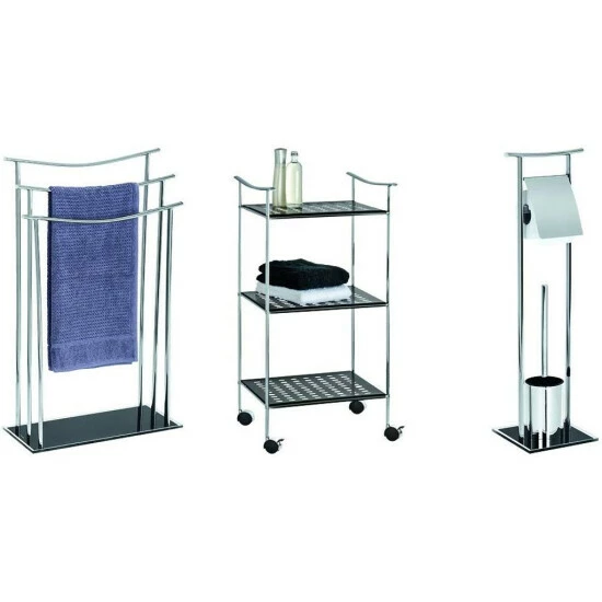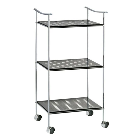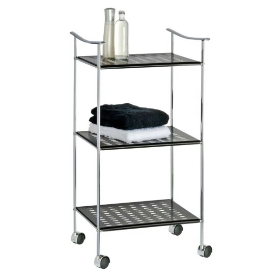 Der WENKO Badwagen Japan verspricht Ordnung und minimalistisches Design für das Heim. Die Bad-Serie Japan greift den trendigen japanisch-asiatischen Einrichtungsstil auf und präsentiert ein zeitloses, schlichtes Konzept mit klaren und einzigartigen Formen. Der elegante Badwagen Japan bietet auf seinen drei großen Ablagefächern aus schwarz lackiertem Lochmetall viel Platz für Handtücher; Bad- und Pflegeutensilien. Durch die vier leichtgängigen Rollen lässt sich der Badwagen bequem neu positionieren und ist daher flexibel einsetzbar.