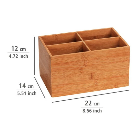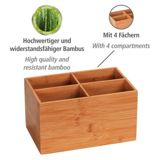 TERRA Bad-Organizer mit 4 Fächern, Bambus, WENKO. Ein Bad-Organizer kommt zur Hilfe, wenn die Ordnung außer Kontrolle geht. Kosmetik, Haarspangen, Schmuck, Beauty-Accessoires hier sind Artikel, die ein riesiges Chaos schaffen können, wo wir oft nicht finden können, was wir brauchen. Das WENKO TERRA Modell ermöglicht es Ihnen, alle Kleinigkeiten zu trennen, so dass Harmonie und Ordnung in Ihrem Badezimmer.