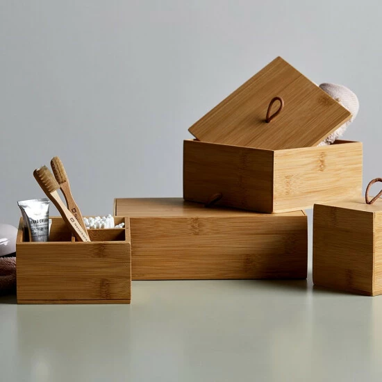 Gefertigt sind die attraktiven Aufbewahrungsboxen aus hochwertigem Bambus, welcher hart und widerstandsfähig ist.