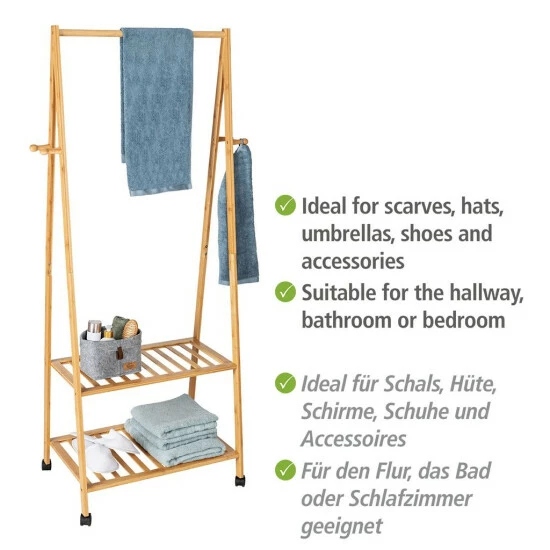 Der praktische Kleiderständer Honolulu von WENKO wird zum Hingucker in allen Räumen. Das schlichte Design und die natürliche Farbgebung des Bambus vereinen sich zu einem modernen Möbelstück, das Ihrem Zuhause einen modernen Touch hinzufügt.
