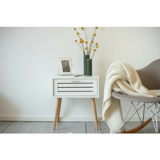 Der moderne Beistelltisch ist vielseitig in Ihrem zu Hause einsetzbar. Der wohl beliebteste Ort für einen Beistelltisch ist das Wohnzimmer. Hier hat der Beistelltisch zahlreiche Einsatzmöglichkeiten und verschönert jede leere Ecke. Ein Beistelltisch ist eine tolle Alternative zu einem großen Couchtisch, da er auch gut neben dem Sofa platziert werden kann. Als Ablage für eine Tasse Kaffee oder die Fernbedienung ist er bestens geeignet. Auch als Deko-Element in einer Ecke mit einer schönen Grünpflanze ist der Tisch ein hübscher Hingucker. Und im Schlafzimmer macht das Tischchen als Nachttisch eine gute Figur. Außerdem bietet der Tisch in seiner großzügigen Schublade (42,5 x 15 x 35 cm) auch jede Menge Stauraum für Naschereien, Accessoires, Strickzeug sowie private Gegenstände, die nicht jeder sehen soll.