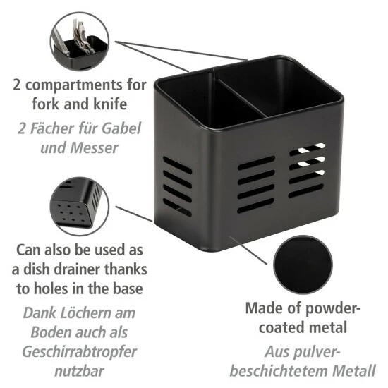 - Besteck-Organizer und Abtropffläche in einem. Stellen Sie den Besteckbehälter so auf den Tisch, dass jeder der Nachtschwärmer freien Zugang zu ihnen hat, oder verwenden Sie ihn als Trockner.