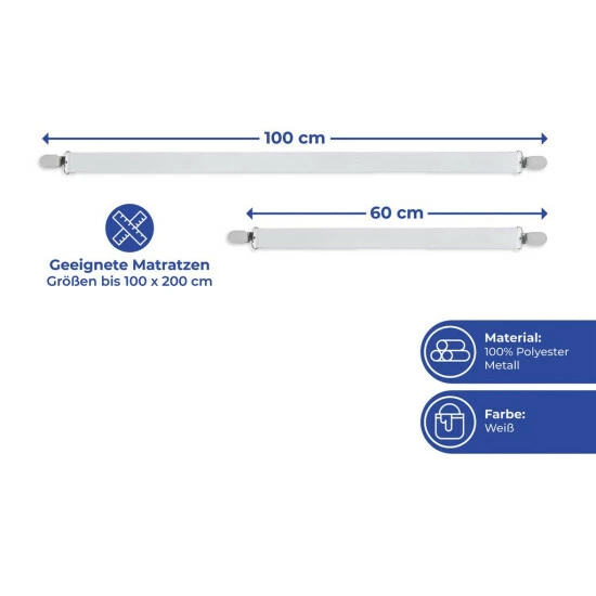 Der Betttuchspanner ist für zwei Matratzen von einer Größe bis 100 x 200 cm geeignet.