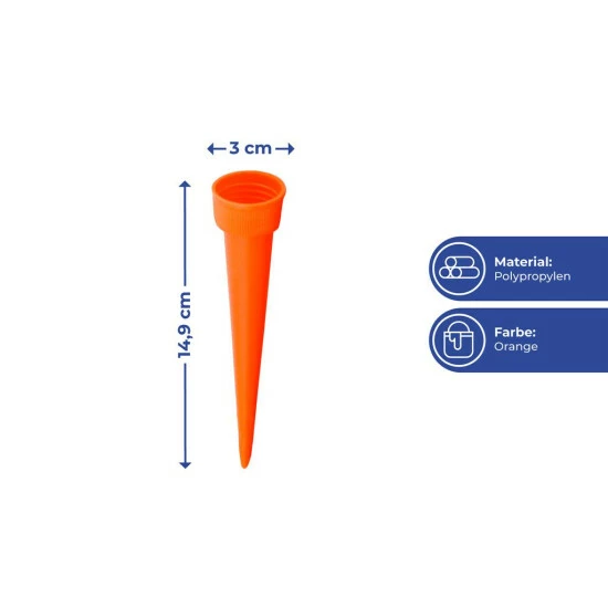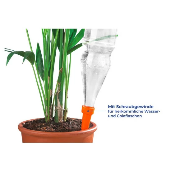Die Bewässerungs-Spikes versorgen Ihre Zimmer- und Balkonpflanzen während Ihrer Abwesenheit mit reichlich Wasser. Einfach eine Flasche aufschrauben und das spitze Ende in die Blumenerde stecken – fertig. Für alle herkömmlichen Wasser- und Colaflaschen geeignet.