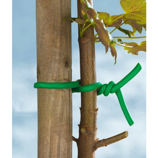 Dieser Bindedraht wird Ihren Pflanzen gefallen. Denn der robuste Eisendraht ist mit einem weichen Gummimantel umgeben und daher sehr flexibel und nachgiebig. So schneidet er nicht in die Pflanze, egal wie zierlich sie ist. Trotzdem ist er aber so stabil, dass er sogar zum Fixieren von kleinen Bäumchen geeignet ist. Länge: 5m, Ø: 5mm.