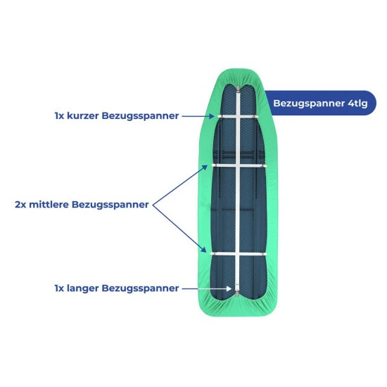 Der zusätzliche extralange Spanner sorgt dafür, dass der Bezug auf die Länge gespannt werden kann. So klappt das Bügeln noch schneller und vor allem faltenfrei. Das spart Zeit, Strom und Kraft.