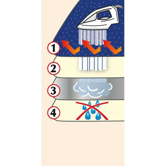 - speziell Dampfbügelgeeignet Das 5-lagige Hightech-Gewebe reflektiert optimal Dampf und Hitze. Durch die in dem Gewebe enthaltene Aluminiumschicht und dem Dampf aus der Bügelstation bildet sich zwischen den einzelnen Lagen ein Luftpolster, das für besonders schonendes und komfortables Bügeln sorgt. Das Bügeleisen gleitet ‘wie auf Wolken’ und die Hitze wird zusätzlich reflektiert.