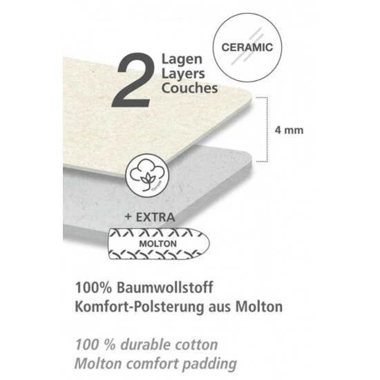 1. Lage: 100 % Baumwolle mit Keramik-Beschichtung – sorgt für optimale Hitzereflektion und schnelleres, glatteres Bügeln. Nur von einer Seite Bügeln spart bis zu 50% Zeit!